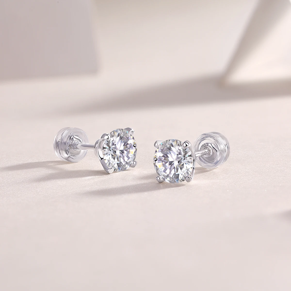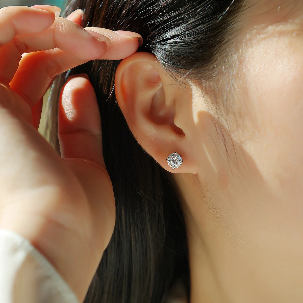 1ct Moissanite Earrings 925 Silver 18K Gold Plated 4 Prong Stud Elegant Jewelry for Women Comes with GRA Certificate