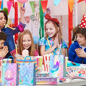 The mermaid goodie bags in mermaid party gifts are made of high-quality paper, which are strong, durable and not easy to be damaged, and can well meet your needs in the mermaid birthday party.