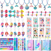 84pcs Mermaid Party Favors for Boys and Girls with Mermaid Birthday Rings Keychain Slap Bracelets Bags Hair Clips Necklace etc