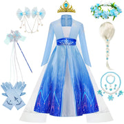Frozen 2 Princess Elsa Dress With Cloak Kids Stage Performance Outfits Halloween Cosplay Party Clothes Birthday Surprise Gift